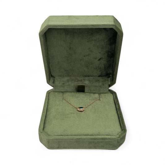 Olive Green Cut Corner Square Hinged Velvet Necklace Box