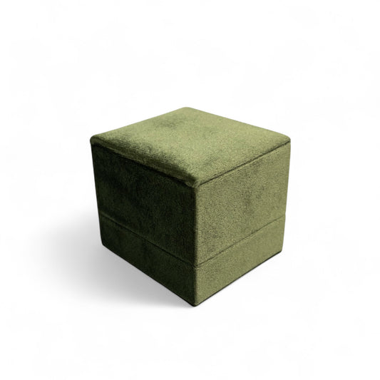 Olive Green - Classic Hinge Square Velvet Single Ring Box