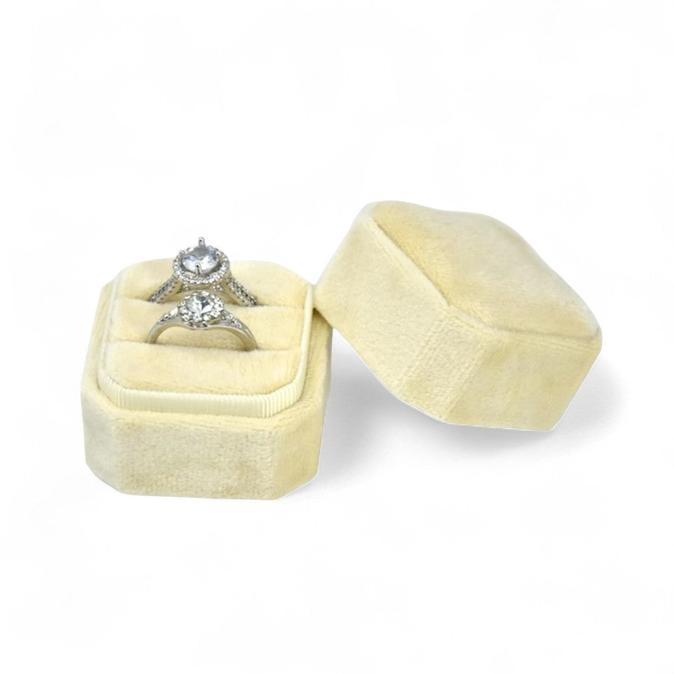 Cut Corner Square Velvet Ring Box - Double